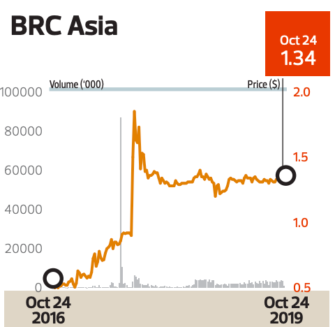 Shares in BRC Asia are up 8% so far this year to close at $1.34 on Oct 24. However, the stock is still relatively cheap at 9.2 times earnings and 1.25 times book value. UOB Kay Hian has a “buy” call for the stock, with a price target of $1.75, while SAC Advisors has a “buy” rating and price target of $1.71.