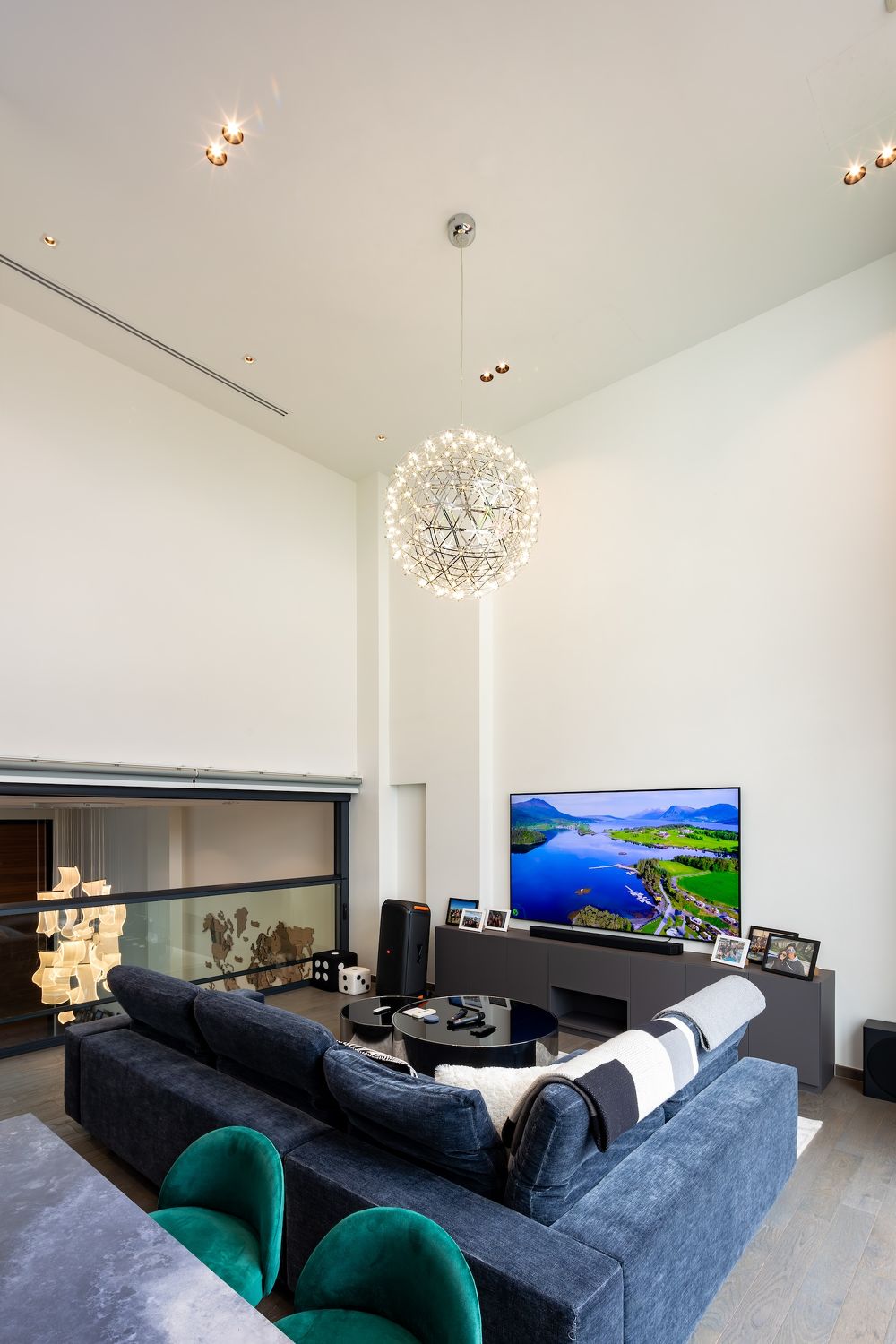 The living room and mezzanine have a 5m ceiling height each (Photo: Samuel Isaac Chua/EdgeProp Singapore)