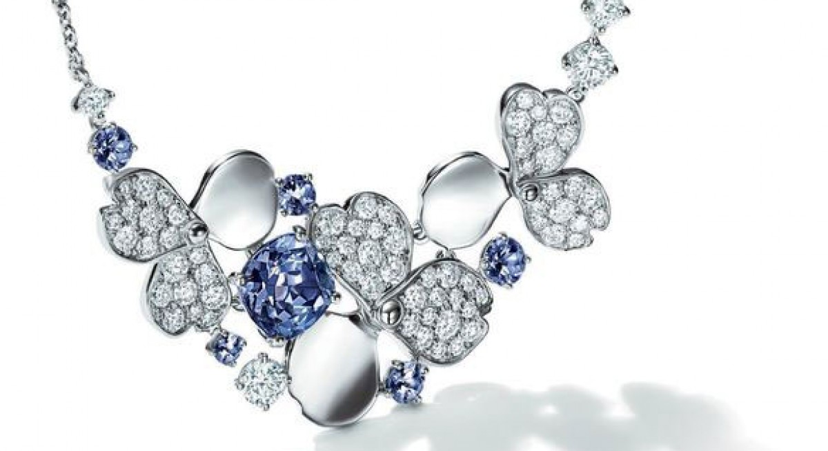 A necklace in platinum with diamonds and tanzanites.Source: Tiffany & Co.