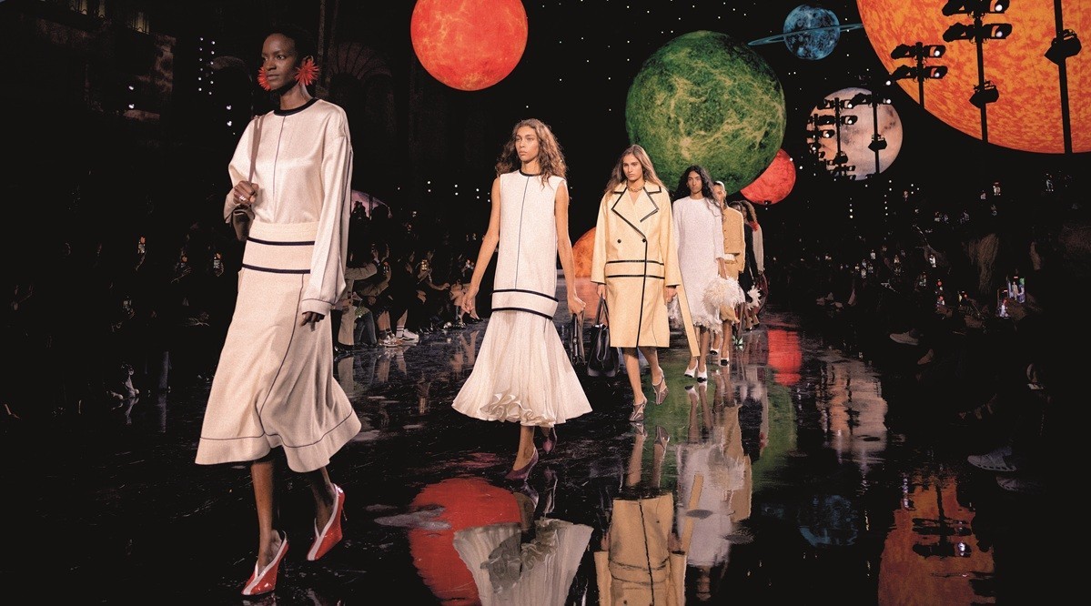 Blazy’s debut Chanel show happened last October, nearly a year after he was announced as the maison’s newest head, so you can imagine the anticipation in the months leading up to the Spring/Summer 2026 runway. Guests arrived at Les Grand Palais in Paris, which had been transformed into a fantastical solar system with glowing planets suspended throughout the space, as if to reference the Big Bang and the subsequent refresh of the galaxy. A line in the show notes — “This is a universe, the Universe of Chanel” — emphasised this. It was also hard not to see the set as a nod to founder Gabrielle Chanel’s love of celestial bodies and the cosmos, and the iconic Karl Lagerfeld’s zeal for dramatic runways and storytelling.